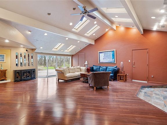 Seclusion and privacy abound in this sprawling ranch nestled on 2.5 acres! Enter to an enormous great room with vaulted ceilings and gorgeous hardwood floors. A striking woodburning fireplace adjoins the great room and chef's delight kitchen with state of the art, restaurant quality appliances including a grill! Top of the line cabinets and countertops with center island. Open, airy and bright with an easy flowing floorplan. The large, formal dining room is ideal for entertaining with tons of natural light. The Owners bedroom suite is enormous with a newly designed, modern bathroom. A floating vanity and massive shower feature top of the line hardware and multiple jets. The IN LAW SUITE has it's own kitchen, bathroom, and private entrance.....could be used as a rental! Step out onto the back patio overlooking the tranquil yard. Endless possibilities for this huge, mostly level yard. Not your cookie cutter home! Voice activated lights, garage doors and 4 thermostats.