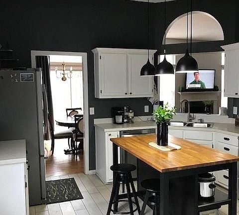- Kitchen: Counter Tops-Formica, Floors-Tile, Cabinets-Painted