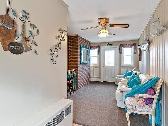 Welcome home! Prepare to be wowed by updates galore in Chelmsford's newest listing. Step foot into your breezeway that connects you to your garage and kitchen, the perfect bonus space for shoes, coats or an additional sitting area. The kitchen hosts beautiful cabinets, granite countertops, stainless steel appliances, a breakfast bar, hardwood floors and an eat in dining space nearby. Follow your hardwood floors over to the living room that is accompanied by a cozy wood burning fireplace surrounded by built in shelving. The picture window allows an abundance of natural lighting in and don't forget the surround sound system that makes movie nights at home a whole lot better. Two bedrooms, also with hardwood floors, are nearby. The full bathroom has an oversized shower stall with glass door and updated vanity. You'll enjoy your stone patio all summer long or opt to sit out on your front deck and relax. Exterior of the home hosts cedar clapboard siding, stone walk ways, and more!