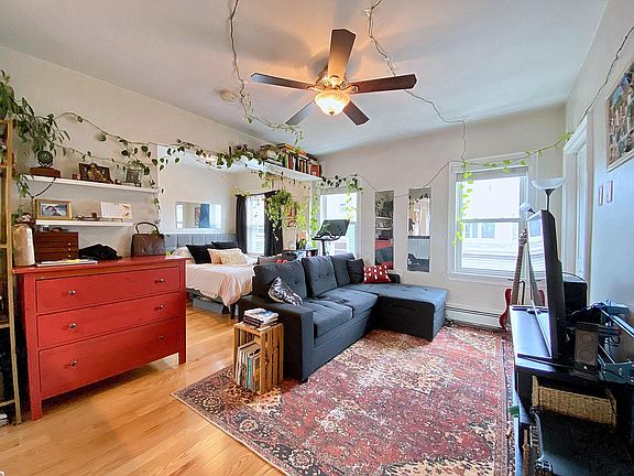 9/1! Fully renovated penthouse studio with your very own PRIVATE ROOF DECK! Laundry in-unit! Chef's kitchen featuring SS appliances, cherry cabinets, granite counters and a breakfast bar! Gorgeous tiled bath! Open concept living room with plenty of space to set up how you choose! Easy to arrange to give that "one bed" feel! Hardwood floors, built-in A/C unit and excellent natural light throughout! A superior rental opportunity near all that Charlestown has to offer! Available 9/1/2025. Owner pays for cold water and sewer. Tenant responsible for heat, hot water, electricity. Electric stove. Square footage is approximate. No smoking, pets or undergrads. Street parking. Upfront costs = first months rent + 1 month security + 1 month broker fee = $8,400.00