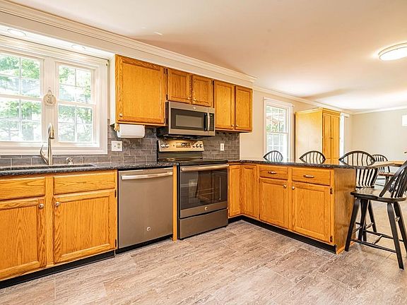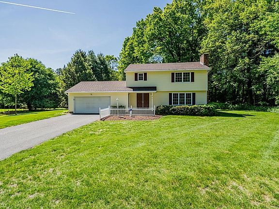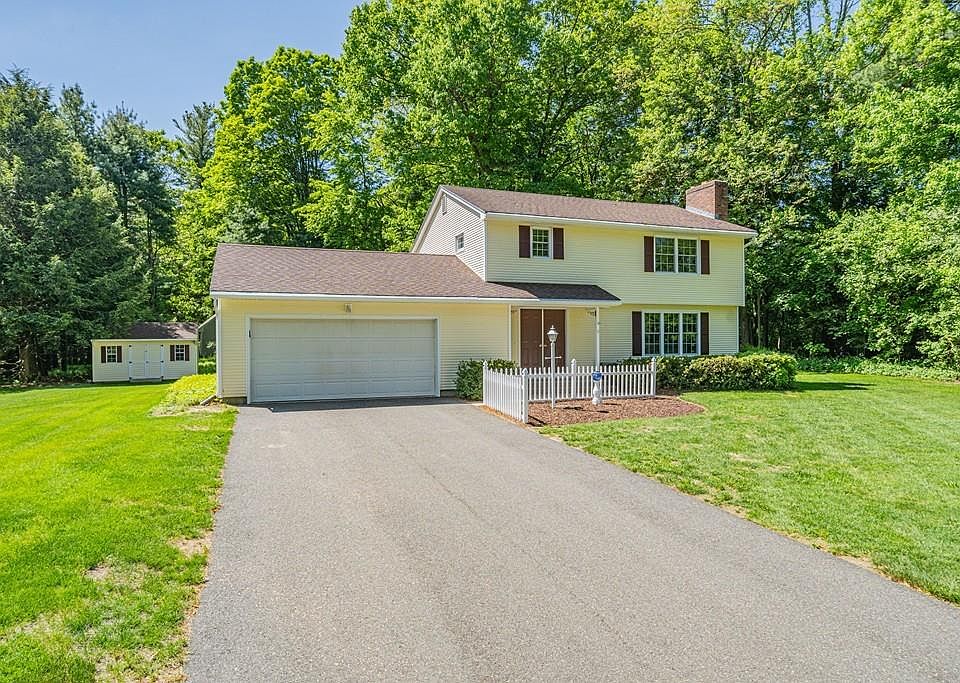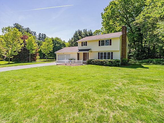 Welcome to Hadley- Located in a neighborhood setting you will find this move in ready well cared for colonial. Freshly painted interior and a newer kitchen remodel with stone counter tops, back splash and appliances that is open to a spacious area to dine in for everyday use and large enough to accommodate a family party. Off the kitchen you will find a spacious deck area that is great for summer cookouts that was freshly spruced up. Living area features wall to wall carpet and a fireplace, their is also access to a half bath on the first floor for convenience. Second floor features a large master bedroom with master bath, there are two additional bedrooms on the second floor and an additional bath. This property is in great shape and move in ready, don't miss out!