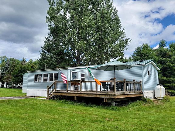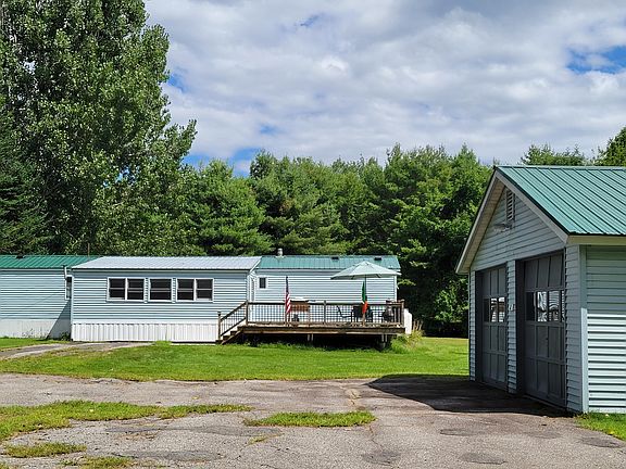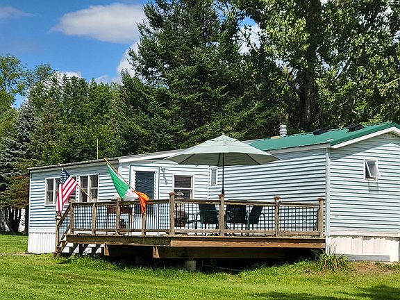 Immaculate mobile home set on a beautiful open flat lot. Home has a nice deck, a 3-season addition that is all knotty pine, a 2-car garage and a shed. The home offers lots of updates including a brand-new bath, FHA heating system, new metal roof, wood flooring, a nice kitchen with a built-in desk, a living room, and 2 bedrooms, each with their own full bath. Home is in great shape and won't last long.