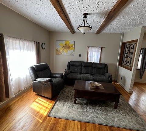 An older home that has evolved with the neighborhood for almost one hundred years. There is no single architectural style but it is utilitarian and someone with better sense of decor would have a good base to work with. There are three levels of rooms, so I think this house would not be so good for folks who cannot navigate stairs well and with low head clearance in basement I would not recommend for tall folks. Gas stove and heat (steam) with electric radiant in spots, vinyl siding and a new roof and recent hot water heater.
