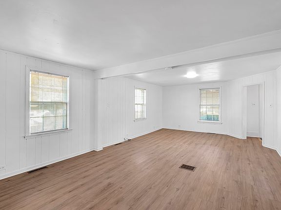 Fabulous opportunity on Spartanburg’s thriving Eastside and award-winning School District 7. This spacious 2 bedroom, 2 bath bungalow sits on a large, fenced corner lot and welcomes you with a charming enclosed front porch. The interior features an open kitchen, living and dining perfect for entertaining and space to make your own. Newly updated with fresh paint and laminate plank flooring. Opposite the living space are two sizeable bedrooms. The first features new laminate plank flooring, two closets and built ins. The adjoining bathroom has a double vanity, laminate plank flooring and conveniently shares a hall entrance. Bedroom two has an updated ensuite bathroom and functional built ins for additional storage and décor. The fenced backyard hosts a large deck and two outbuildings- one a single car detached garage, and both wired for electrical. Storage abounds in these spaces with multiple shelving options. Conveniently located by the Drayton Mills Marketplace, dining and amenity options are steps away. For fitness enthusiasts, The Daniel Morgan Trail System has multiple trailheads located within close vicinity to the home.