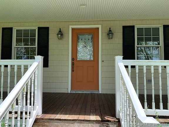 This classic Cape Cod home is perched on a hill in a beautiful farm land setting. Relax on the charming front porch and enjoy the peace and quiet of the cool, fresh country breezes. The back deck over looks a private back yard with room for clearing. The kitchen boasts gorgeous cherry cabinetry with cathedral ceilings center island and tons of natural light. Main living area is open with gleaming hardwood floors. Family room offer a fireplace and hearth. Sliding glass doors step to the back deck. Convenient mudroom laundry area with excellent storage facilities. 1st floor bedroom with 1st floor full bath. Upstairs has large master bedroom, 2 more bedrooms and full bath. Brand new carpet in all bedrooms and living room. 1 car garage and walk out basement which could be finished. Cedar impression vinyl siding and top notch Buderus heating system. Wonderful location minutes to Route 95 highway yet situated in a magnificent country setting.