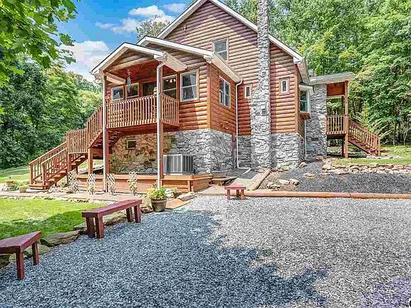 Recently updated stone & log home tucked away in a park like setting on a private 2.33 acre lot, with walking trails for the outdoor lover.This gorgeous home shows character and quality throughout. With 3Br's & 2 full baths, great room w/vaulted ceilings, this home features an updated kitchen w/new appliances, new HW floors, new carpet, updated baths, multi-level decking, skylights, great windows, part finished basement w/family rm and wood stove, and room for more. Truly a one of a kind home you must see