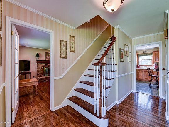 Classic Updated Center Hall Colonial on a spacious oversized corner lot. 4 Bedroom, 2 1/2 bath home with gleaming hardwood floors! Freshly painted, open concept floor plan with newer kitchen including SS appliances and center island, Anderson slider leads to a large deck. All bathrooms have been updated. Great room with floor to ceiling stone wood burning fireplace, vaulted ceiling and Anderson double french doors that lead to the private patio and back yard. The bedrooms are large and have plenty of closet storage space. Finished basement with 2 extra rooms and a storage/utility area. The lawn is chemical-free for those concerned with pesticides. HVAC approx. 10 yrs old. Water heater is 7yrs. Roof, 13 yrs. Alarm system and Sprinkler system.HSA Home Warranty Included!