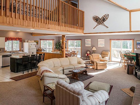 Arrive slopeside at Shawnee Peak in less than 5 minutes from this beautiful year round home. Designed for the ski enthusiast, this large home offers an open concept kitchen/entertainment area, 2 family rooms, a billiards room and an indoor hot tub to enjoy after a long day of skiing. Investment potential is also an option with 4 season amenities. Assoc. includes access to sandy beach, inground pool, tennis courts,club house and more.