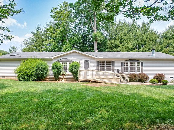 Tucked away at the end of a private road with scenic mountains and natural landscaping is this large 3 bedroom, 3 bathroom manufactured home. With over 2000 square feet, half an acre of property, and easily accessible, this home is convenient to maintain! The large windows, multiple skylights, and patio doors give an abundance of natural light to the home. The layout has so many different potential uses as well, with ample living space options in the den and living room, as well as a bedroom that is accessible through either a hallway door or through the master bedroom - could make an incredible office space! Living space is large and unconfined, open to the expansive deck off the kitchen. The amazing yard provides lots of privacy, peace and quiet. Located in Candler, off of Liberty Road, close to schools, shopping, and a short drive to downtown Asheville.