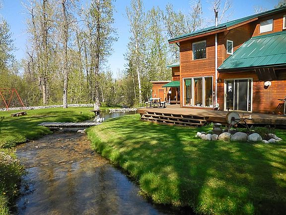 Escape to an impressive water paradise surrounded by trees & privacy. Tanglewood Creek winds around lush landscaping, flowing beneath bridges while Rock Creek is just 150 feet away on a path. Beautiful, mature perennial gardens & enclosed raised-bed vegetable garden. Wonderful Post & Beam home, 2 story great room & floor to ceiling windows, built in bookshelves, 2 loft bedrooms w/built in dressers, master w/sitting room & office/craft room - could be main floor master with deck & hot tub. Nice shed\storage-15X15 fully finished bonus room above. Secluded but not isolated - just 12 mins to Red Lodge.