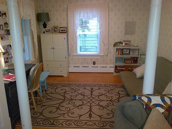 2 bedroom apartment, centrally located on quiet street close to UVM, hospital, interstate and a park. Sunny, spacious apartment. Large living room and side room/office with beautiful hard wood floors (and carpet). Stamped Tin ceiling tiles. Three season enclosed front porch with screen windows (and storms) all around. Enjoy a coffee or cocktail on your own porch while enjoying the sun or breezes as they move through. Enclosed back porch with locked storage. Laminate wood floors in bedroom. Full tub with shower in bath. Yard backs up to Landry Park's Community gardens for additional privacy. Yard fenced on 3 sides. Laundry: newer washer and dryer in the unit. New gas stove/oven in kitchen. Off street parking spaces and on-street parking allowed. Basement space for storage. First floor of duplex. Owners pays for trash, lawncare, town water. Tenant pays for heat, hot water, electrical, other utilities. Tenant responsible for snow removal from drive/walks.
