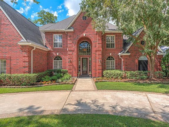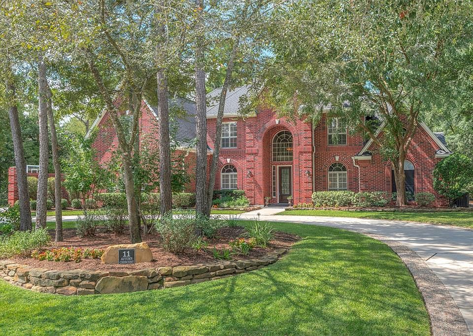 SUPREMELY INVITING estate-sized home in prestigious Hollymead - one of the most scenic neighborhoods in The Woodlands with drive-home views of the highly acclaimed Palmer/King course and walking distance to The Woodlands Country Club! This improved 5 BR plan with circle drive features gleaming hardwoods throughout the main living area; modern "greige" interior with updated kitchen, newer stainless appliances with beverage cooler, beveled subway tile backsplash, paneled cabinets, pendant lighting, planning area; great flow on main level with open kitchen/den, both formals, enclosed study; luxurious master suite with bay windows overlooking stunning backyard; spacious secondary bedrooms up plus large game room & bonus multi-purpose room; smart built-ins throughout! Private, park-like setting in back w/recreational salt-water pool/spa, newly added summer kitchen & fireplace for ultimate, year-round outdoor living! Walk/ride to top-ranked Galatas Elementary! Low tax rate! Never flooded!