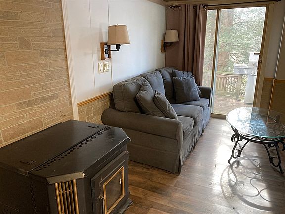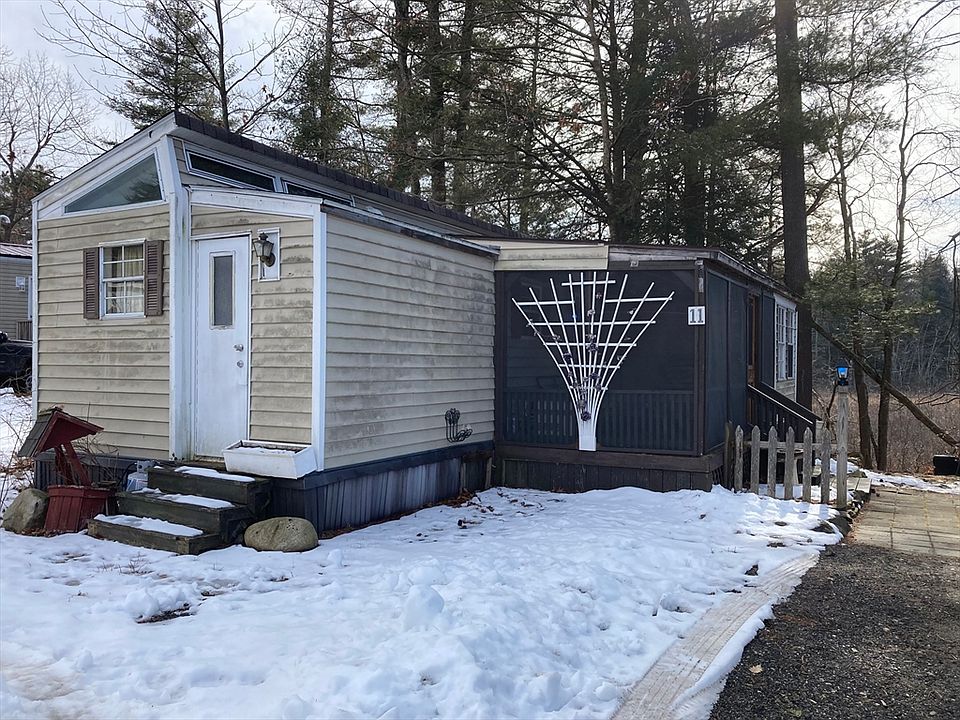 Welcome to Rock Rimmon Cooperative Park, a community of small homes offering simple and low maintenance living with no age restrictions. With 479 square feet of living space, this home has an open concept living room/kitchen area with a cathedral ceiling and clerestory windows that flood the room with light. A newer sliding door leads to a private deck with a view of the woodlands. The bathroom features a newer shower and washer and dryer. An additional room is perfect to use as a guest room, home office or den. The bedroom has a built-in closet and drawers. New vinyl plank flooring throughout. Enter the home through a screen porch - a perfect place to relax on a warm summer evening. The home is in need of a new heating system. Pets are allowed with park approval. Showings begin immediately.