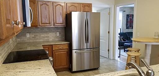 - Kit Dscrp: Countertops - Stone/Granite/Solid, Flooring - Stone/Ceramic Tile, Breakfast Bar / Nook, Open Floor Plan