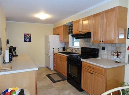 Updated 3 bedroom ranch with hardwood floors, eat-in galley kitchen with maple cabinets and large window in dining area overlooking lovely back yard, fireplaced living room with hardwood flooring, 3 season porch with sliders to back yard and newer patio. Newer granite step in front and patio area. All bedrooms all have hardwood, the bath has been updated with tile flooring and tile tub surround, level, nicely landscaped lot close to shopping, schools and highways. Architectural shingle roof.
