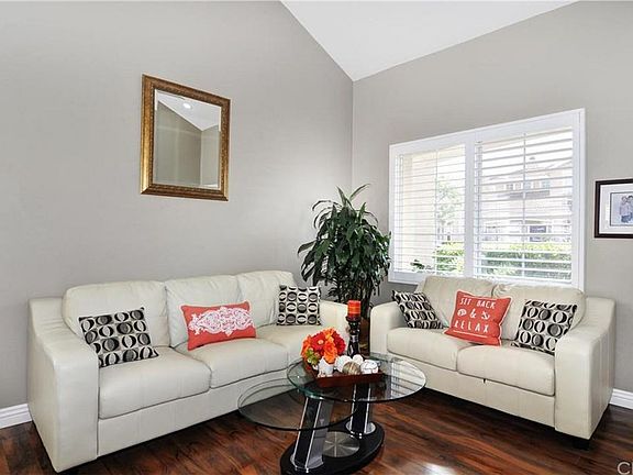 This Lovely Upgraded Canyonview Home, Plan 1650, is Situated on Quiet Interior Cul-de-Sac Street. It Features 3 Bedrms, 2.5 Bathrms, & 1,700 SF, Central A/C, Beautiful Wood Laminate Flooring, Designer Tile Floors in Kitchen & Baths, Soaring Ceilings, Plantation Shutters, Recessed Lighting, Ceiling Fans, Designer Paint, High Base Boards & High Transom Windows for Lots of Natural Light. It Includes a Spacious Formal Living Rm w/Elegant Formal Dining Area, Inviting Family Room w/Brick Fireplace, Sunlit Kitchen w/Large Eat-In Breakfast Nook, Tile Countertops, Natural Wood Cabinetry, Gas Stove & Dishwasher. Hardwood Staircase Leads to Landing/Loft Area Perfect for Small Office Nook. Master Suite has Walk-In Closet & Luxurious Spa-Style Bathrm w/Dual Sinks, Soaking Tub & Separate Shower. The Low Maintenance Backyard Boasts Wrap-Around Brick Ribboned Hardscape w/ Raised Planters - Perfect for Outdoor Dining & Entertaining. It also has Upstairs Inside Laundry, Direct Access Garage, & Charming Front Sitting Porch. This Wonderful Neighborhood Includes an Association Pool, Spa, Tennis & Sports Courts. It is Located Close to Shopping Centers, Dining, Award-Winning Schools, Saddleback Church, Whiting Ranch Wilderness Park, Sports Park, Hiking Trails, & 241 Toll Road.
