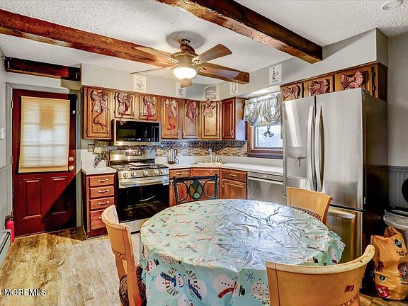 Amazing potential at this 3 bedroom, 1 full bath home. Bring your light and bright favorite paint color to refresh this charming space. Inside you'll find exposed beams, hardwood floors, and architectural details that make the home cozy. There is an eat-in-kitchen with brand new stainless appliances, a large dining room, and living room on the first floor along with the primary bedroom and full bath. Through the kitchen and up the stairs, another 2 bedrooms. The basement features the laundry and an expansive space to make your own. Rear door that leads to a great, fenced backyard/outdoor space with deck and patio. There is also a detached garage and driveway. The home is on a nice location on a pretty street convenient to Rt 33 and the areas nicest restaurants on Park Ave and Main St