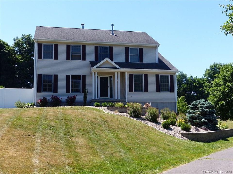 Located in the highly desirable Barn Hill neighborhood this completely move in ready colonial with professional landscaping is sure to impress. The shared drive way gives a cul-de-sac feel. Expansive yard for entertaining, this home features 3 bedrooms including a master suite with walk in closet, full bath and jetted tub, 2 1/2 bathrooms, spacious kitchen with granite counters, center island, high end Bosch appliances and slider leading to a trek deck with retractable awning. Large living room with gas fired fireplace. Formal dining room with imported Brazilian tiger wood flooring. 1st floor family room with french doors and crown molding. The interior has been professionally painted within the past year. 2 story entry foyer, finished lower level, 2 car garage, gas heat, gas hot water heater, central a/c, thermopane windows, first floor laundry, alarm system, above ground swimming pool with paver patio entertaining space, storage shed. Close to shopping, restaurants and easy highway access.