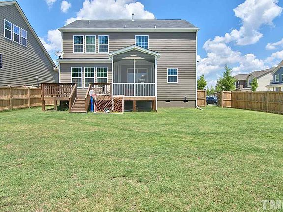 Coveted Da Vinci plan with 5 bedrooms, 3 full baths including 1st-floor bedroom and full bath. Fabulous upscale kitchen with stainless appliances, granite counters, tile backsplash, white cabinetry, and built-in pantry, breakfast bar, and upgraded lighting. Open floor plan with beautiful hardwood floors and crown molding. Ceiling fans in all bedrooms and living room. Gorgeous master suite with coffered ceilings, huge built-in closet, and spa-like bath! 2 car finished & painted garage with 12 heavy-duty wall hung shelving and expoxy flooring and, Deck, lovely screened-in porch, and large fenced-in yard!!! Perfect Durham location! Energy Star Appliances.