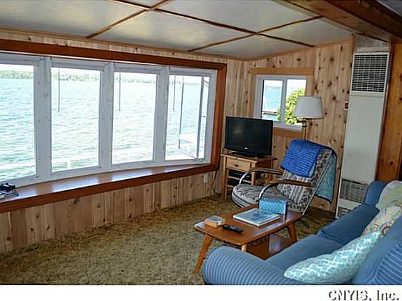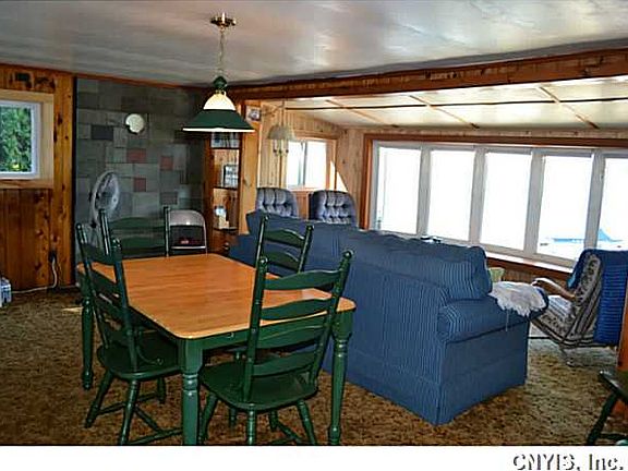 2 BR 1 bath cottage on St. Lawrence River with 56 feet of waterfront. This is the place to spend your summers! galley kitchen w/ breakfast bar, dining area and living room all with beautiful river views.2 nice sized bedrooms and full bath with stand up shower.outside is where you will spend most of your time.relax under the covered patio area or sit on the dock and watch the ships go by.Plenty of places for one to enjoy this property. Raised garden beds for all the gardeners out there.2 small sheds for storage.Like to have company? then the guest cottage will be perfect. will sleep 4-6 comfor
