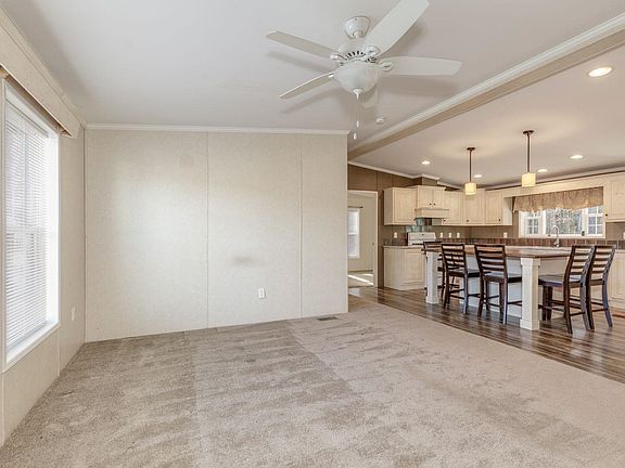 Stylish affordable housing can be yours in this small park along the banks of the Suncook River, less than a mile from the Epsom traffic circle. When you step inside the double-wide home you'll find wonderful open concept space-the living room leads right into a contemporary kitchen with loads of cabinets and counter space, a center island where friends and family can dine and converse with a window over the sink that looks out into the peaceful woods out back. The layout is very conducive to festive gatherings or quiet evenings. The primary suite will make you feel like pampered royalty. The bedroom features a headboard fixture for accent lighting and the bathroom has a generous walk-in closet and enough cabinets to store towels and toiletries. The other two bedrooms are at the opposite side of the home creating a buffer for privacy and they enjoy a shared full bath. The Suncook River runs along the easterly border of the property so you can walk along its banks or enjoy a lawn chair after a long week. You're not far from all amenities along the Route 202 corridor and it's a straight 20-minute shot into Concord or jump on Rte. 28 down to Hooksett and Manchester. If you enjoy hiking, mountain biking, or snowmobiling, Bear Brook Park is 15 minutes South. Dogs and cats are welcome.