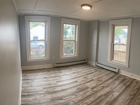 Recently renovated two bedroom one bath apartment on the first floor of four apartment building. This apartment has its own driveway And porch. Large backyard. Heat and hot water included. No pets. owner pays for heat and hot water. Tenant pays for electricity. One year lease term. No pets allowed.
