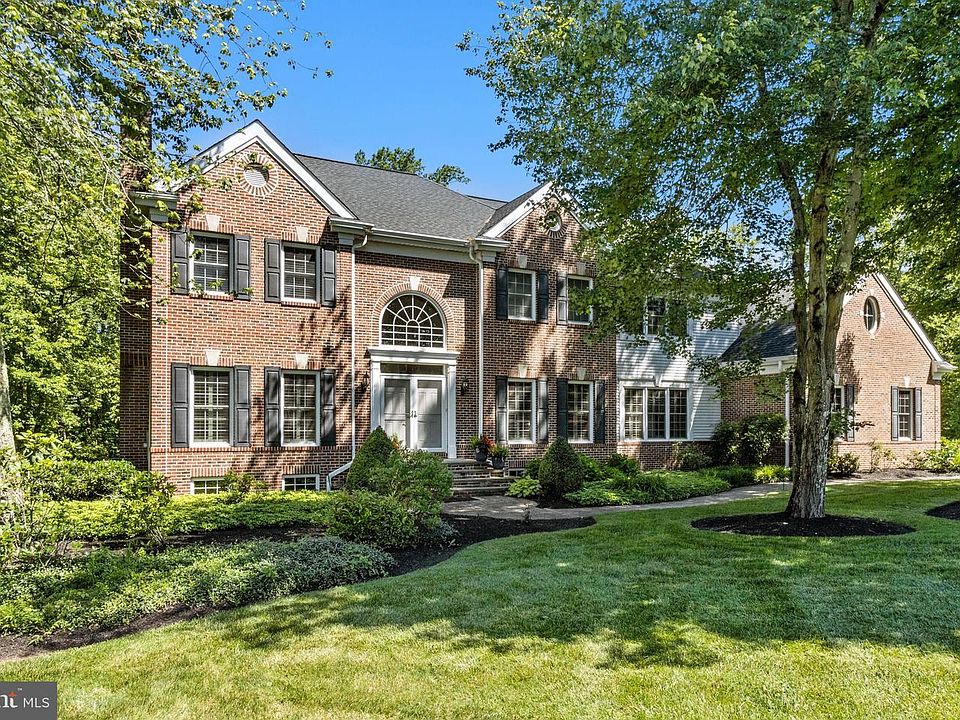 On arguably the best located lot in Hidden Lake, this exquisite home has the appeal of a neighborhood with the privacy afforded by being on the back of a cul-de-sac with private, treed 1.25 acres as the backdrop. From the manicured front exterior to the stately entranceway, this home welcomes you with classic elegance and spaciousness. In the soaring two-story foyer, a turned staircase is flanked by a charming traditional living room with fireplace on the left and a handsome dining room - large enough for hosting the holidays - on the right. Beyond that, you're led into the heart of the home, where a two-story family room overlooks the kitchen, yard, and accesses a tucked-away home office. French doors add privacy to this office space, while the family room feels open and airy from a wall of windows that overlook the green screen of the yard. A second fireplace warms the space with ambiance in the cool weather months. Bar seating divides the family room from the eat-in kitchen, which has crisp white cabinets, granite counters, and additional seating at the center island. Ample counter space and upgraded appliances will please the home chef; large pantry closets and a beverage station next to the paneled-to-match refrigerator complete the space. Beyond the kitchen, a full main-floor bedroom with en suite bathroom and a laundry room offer convenience for guests or more independent family members. Dining al fresco is effortless with doors from the kitchen to the open back deck that overlooks the yard and playset. Upstairs, two more generously sized bedrooms share a tasteful full bath, while a sprawling main bedroom suite with sitting room, walk in closet, and sumptuous en suite bath create a restful haven all it's own. Large windows and a tray ceiling add to the luxury of this large room. The walk in closet features built-in storage and could easily serve as a dressing room. The bath, which has dual vanities and a dressing counter space, is flooded with natural light from the skylight above and offers a relaxing jetted soaking tub, separate shower, private water closet, and calming neutral tones. Finally, the finished lower level has been created with multiple uses in mind: a built-in wet bar area houses two drinks refrigerators and has ample cabinet space, while the wide open spaces and nooks of the basement provide space for a media room, playroom, home gym - or all of them. With a location like this - in elite Hidden Lake, close to Newtown Borough's shops, dining, and amenities, and in Council Rock district - this home will not last. For the finest Newtown living, why not call 11 Bayshore Drive "HOME"?