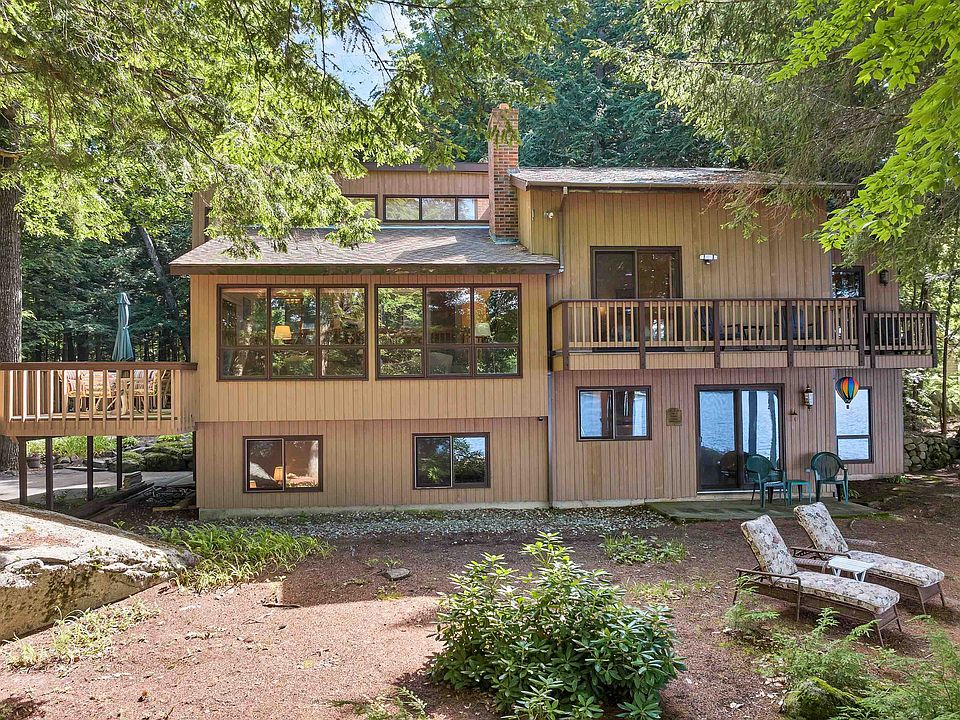 Highly Sought After SUNSET LAKE......known for it's natural setting, lack of public access, close proximity to hiking trails, Lake Winnipesaukee (10+/- minute drive) & of course, LOONS! This attractive spit-level contemporary is set on 2.74 level acres in an all-waterfront environmentally-oriented sub-division known as" Places Point". Other lot features include: 163' of LAKE FRONTAGE of which 40' is Sandy Beach, SW EXPOSURE, 14'X10' Shed & of great value... an ON-SITE BOAT LAUNCH. The home features 2 decks, great Lake Views, 3 Bedrooms, 2.5 Baths, open kitchen/Dining & Fireplced-Living Room. The lower-level includes a full walkout to the water, 22'X14' Family Room with a wood stove and a game room with refrigerator. Cosmetic improvements such as flooring & painting are awaiting the new owners' personal taste. If the water level of lake looks low to you.......it is! The State Of NH is in the process of replacing the Dam. Anticipated completion ........Spring, 2025. OPEN HOUSE SATURDAY, 7/20, 11:00 a.m. to 1:00 p.m. State of NH Site Assessment Study has been ordered.