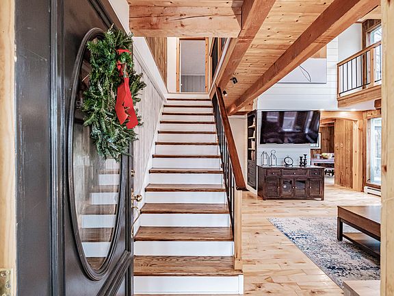 Welcome to this beautiful home conveniently located in Mt Abram Village. A short walk or bike ride to Westside Lodge for skiing, snowboarding, biking and year round entertainment! The Community Access Trail (CATS) links Mt Abram Mountain Bike Park with the Town of Bethel where you can mountain bike, hike, take a trail run, horseback ride or nordic ski. Park and ride from the Mt Abram Mountain Bike Park parking lot or access it from Cemetery Road 1/2 mi away. Go for a swim, kayak or canoe in one of the ponds or lakes near by. Golf Courses are within proximity as well. This easy to maintain property features a spacious floor plan, 3 bedrooms and 2 full baths. A large wrap around deck with mountain views; a place where you can peacefully enjoy your favorite cup of coffee, entertain friends or enjoy the sunset in the summer. This home offers a beautiful chef's kitchen and a mud room off the kitchen with access to the patio and fenced in yard, ideal for pets or gardening. There is ample space in the detached 2 bay garage to store all of your recreational equipment and vehicles. The beautiful master suite offers a private deck and walk in closet. Let your plants thrive and soak up all the sun on the mezzanine! Enjoy the full finished basement, laundry room and bonus room currently being used as a home office that includes a mini climbing wall. The gas stove in the basement keeps it extra cozy during the winter months. Many upgrades and custom built-ins by local cabinetmaker/woodworker. 10 min to Bethel to enjoy the plethora of delicious food options, local shops and scenary. 15 minutes to Sunday River. This home is in turnkey condition, a must see and easy to show! Broker owned. NO SHOWINGS UNTIL OPEN HOUSE ON FRIDAY, 11/25/22. OPEN HOUSE on 11/25/22 from 11-3, 11/26/22 from 11-5, 11/27/22 from 9-11am.