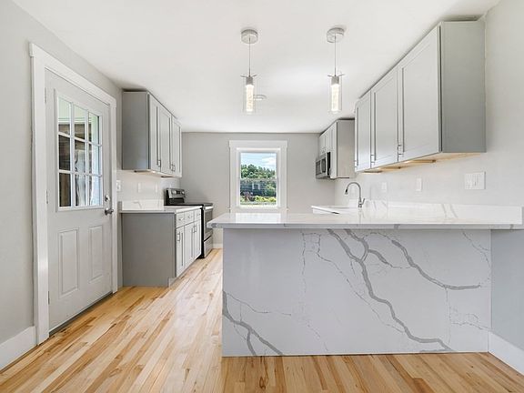 BEAUTIFUL HOME, WITH NEW UPDATES 4 BEDROOMS. NEW PLUMBING, NEW ELECTRIC, NEW SIDING, NEW CENTRAL HEAT AND A/C, Enjoy the new kitchen with quartz counters, Huge open Dining/Living Room, additional Family room, 2 Full Bath with Tub/Shower, Washer Dryer hook ups, 3 bedrooms up stairs, Full Unfinished Basement, beautiful view off a pond for fishing, the town is putting in a little walk/sitting park next to the home, beautiful area to make it your own! Electric Hot Water Tank, & Roof is slate and is in good shape. Gorgeous cement board siding with black shutters. Open House 9/9 8am-10am