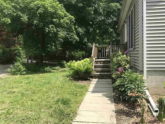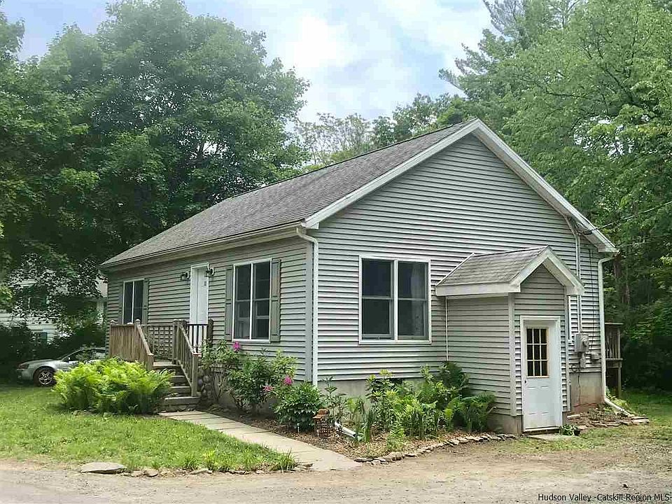 This cute home is located on a charming cul-de-sac Lane, named for George Bellows, noted Woodstock artist. In fact, his studio sat on this very site. The home is easy to maintain and a short walk to the center of Woodstock Village and the Trailways bus stop to NYC. A little stream runs along the boundary and through the rear yard, creating a very rare setting with tranquility and a true country atmosphere. The stream is edged by laid-up stone walls, creating a lovely visual. Please note that the home was built as a one bedroom. There is an adjacent Den (see dimensions) with a large closet currently housing the washer and dryer. The den has a small deck to the rear and access to the private back yard. (see photos) The open kitchen has wood cabinets, and granite counter tops creating a great room effect in an otherwise cozy home.