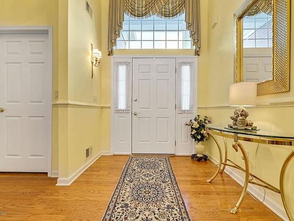 Located at the end of a cul de sac is this beautiful Extended Bayhill model home. Professional landscaping and a paver walkway lead you to the front door. Upon entry you're greeted by gleaming hard wood floors that run through all the main living areas, chair rail and crown molding, and a beautiful chandelier which makes for a very grand entrance. The gourmet kitchen features 42'' glazed maple cabinets, granite counter tops, cooktop and double oven, and stainless steel appliances. There is a breakfast area connected to the kitchen with beautiful views to the water view. The spacious living room features a gas fireplace and double crown molding with recessed lighting. The master bedroom is bumped out and features trey ceilings with crown molding, and a large master closet with built ins.