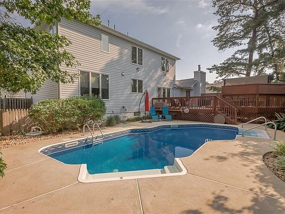 This almost 3K square-foot home sits on a private corner lot. 5 bedroom, 2.5 bath home with cathedral ceiling; updated kitchen, laundry off kitchen. master bath, powder room; NEW dual zone HVAC 2018; NEW roof 2014; finished basement w/extra height; heated built in pool; large backyard deck; side entry 2 car garage with automatic door openers; alarm system with central monitoring; wood burning stove;