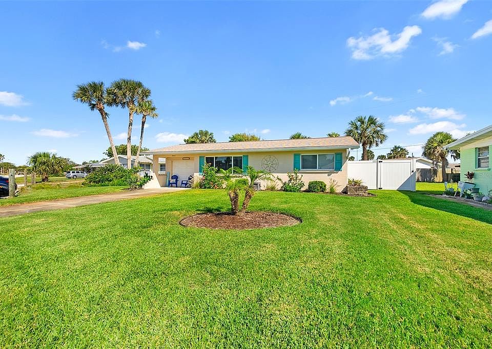 This adorable furnished beach home is in Ormond by the Sea, it sits between the Intracoastal and the Atlantic Ocean. It’s only a two minute walk to the beach with a convenient walk over access right at the end of the street. This 2 bedroom, 1 bath, 1 car garage home would be great for living in paradise year round or the perfect vacation getaway or investment property. The home has lots of updates including the septic tank and drainfield in 2019, roof in 2017, hot water heater in 2019, A/C in 2017, a newer electrical panel and windows. The interior features tile throughout, a large kitchen with ample storage space, a dedicated dining area, updating lighting & ceiling fans, an in house laundry room with plenty of space to turn it into a second bathroom and 2 good sized bedrooms with cedar lined closets. The exterior features a screened lanai with stenciled flooring, an outdoor shower with a rainforest shower head, private backyard with vinyl fencing, a sprinkler system on a well and lush tropical landscaping. Paradise awaits you!