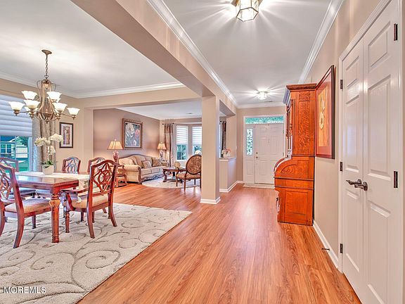 This is a coming soon listing with showings to start on August 18th. Welcome home to this meticulously maintained 3-bedroom, 2-bath Sanibel model nestled in the coveted Four Seasons at Upper Freehold 55+ Adult Community. Step into a seamless blend of comfort & elegance, where pristine luxury planking floors guide you through the hallway & into the living and dining rooms adorned with crown molding. The well-appointed kitchen beckons oak cabinets, stainless steel stove w/microwave above, dishwasher & refrigerator. Granite counters w/tile backsplash & breakfast bar. Open layout flows from the spacious kitchen dinette area to tastefully decorated family room featuring crown molding. Sliding door leading to your Sun Rm w/private rear yard views. Upgraded Master Bath. *Sun room with tiled floor