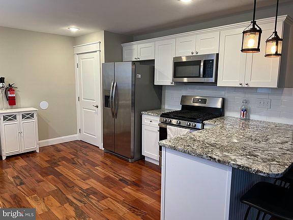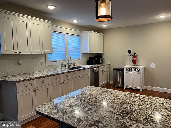 WELCOME to this charming and totally UPDATED Cape Cod in a quiet neighborhood! What curb appeal! Take a walk up the beautiful paver sidewalk to a recently added front porch which leads you inside to an open concept living room and kitchen. You will notice right away the beautiful hardwood floors and sunlit living room. The totally remodeled kitchen features white, raised panel cabinetry with soft close drawers and granite countertops with white subway tile back splash. Also featured in this spacious gourmet kitchen: recessed lighting, pendant lighting over the large breakfast bar and STAINLESS STEEL appliance package! Two bedrooms and a remodeled bathroom complete the first floor. The stairway leads to a beautiful, private Primary Suite “Getaway”! This HUGE bedroom includes a sitting area or office space and features a walk-in closet and a spa-like full bathroom with large, tiled shower and beautiful vanity! Entertain guests in the finished basement with ceramic tile floor and LVP flooring – both durable and easy maintenance! Great flex space for play/game room and family room. The HUGE backyard (fenced on 3 sides) has well-established sod, and a paver patio. This home was recently totally remodeled just 2 years ago: Vinyl Siding, HVAC, Hot Water Heater, ROOF, Windows, major plumbing and electrical work – you name it, it was done well! This home is close to major roads, highways, schools and Joint Base MDL.