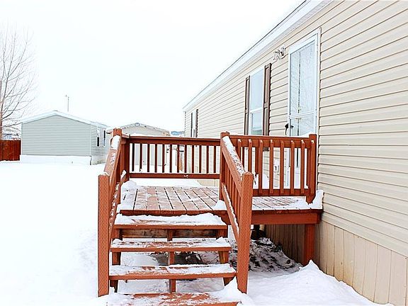 Tired of paying rent? Look no further! This 2015 manufactured home has all of the charm of a traditional home at a very affordable price. This 3 bedroom 2 bath home is clean and ready to move in. Located in Billings Heights the home features new carpet and nice size deck and new carpet. The court has free irrigation water for the lawn, catch and release pond, playground, event center and storage units on site. Mobile homes in this court can be used as rentals with approval of owner and occupant by court. Nearly new and ready for your family!