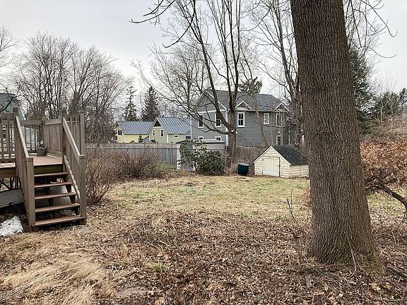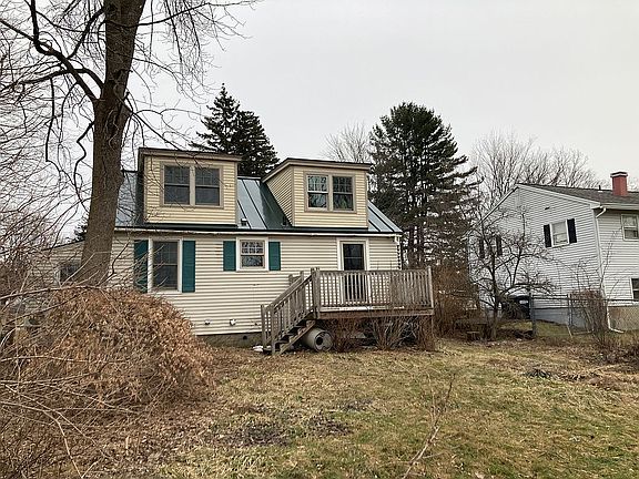 Dating from 1941, the house retains its mid-century charm with original hardwood floors throughout, arched doorways, 6-pane windows, crystal door knobs, etc. First floor features separate living room and dining room, kitchen, bath, and two bedrooms. The bright and open floor plan on the second floor offers many options for additional living space such as a large bedroom, office(s), and/or studio space. Unfinished basement contains washer, dryer, utility sink, new oil tank (2022), and ultra efficient hot water tank (2016).