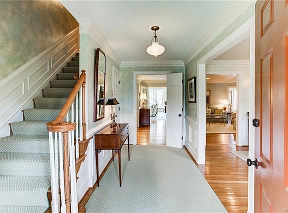 Spacious brick colonial situated on large corner lot in sought after Foxchapel neighborhood! Features hardwoods throughout & TONS of livable space downstairs including formal dining room with fireplace & gorgeous dentil moulding/wainscoting, large & open living room with gas fireplace, built-ins, crown moulding, ceiling beams & wet bar; bright & open sun room perfect for relaxing; billiards room (could be office or playroom) with door to backyard & 2nd staircase, AND family room off kitchen. Downstairs powder room features updated marble vanity with dentil moulding. Eat-in kitchen provides ample cabinet space, walk-in pantry, island for cooking & eating, eat-in area, handsome granite countertops, gas range, double wall oven & stainless appliances. First floor laundry/mudroom with lots of storage space. Upstairs offers 4BR & 2 BA PLUS office/rec. room. Large master has TWO generous walk-in closets, TWO updated vanities & ensuite BA with soaking tub & shower & walk-in attic space. 3 additional BR w/ large closets. Peaceful backyard with patio area perfect for grilling & entertaining with fenced dog run area and plenty of room to play. Deep two car garage with work bench.