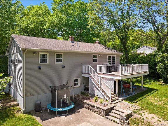 Immediately enchanted by what this raised ranch has to offer. Kitchen with cathedral ceiling, granite counter tops, tile flooring and sliders that lead to a large deck. Open living spaces allow for entertaining loved ones. As you enter the main level, feast your eyes on the naturally spacious living room with bay window. The Eat-in Kitchen area provides space for casual meals. The primary BR has hardwood floors, ceiling fan and it's own bathroom. The two other BR's have equal sized closet space. Located in a neighborhood setting close to the casino's and Electric Boat yet quiet and extremely private wooded back yard.