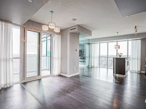 Stunning Luxury Corner Unit. Highly-Sought-After South-East-West Unobstructed Full View. Largest Unit On The Floor. Custom-Made Floorplan By Builder. 2 Walk-Outs To Balcony. 9' Floor-To-Ceiling Windows. Custom Drapery Tracks. Custom Built-In Speakers. Custom Luxury Glass Doors. Custom-Built Office Cabinetry. Custom-Built Closet Organizers In Large W/I Closet. Upgraded Bar & Countertop. Splurged On Upgrades. Right Off Hwy401.