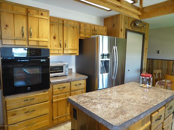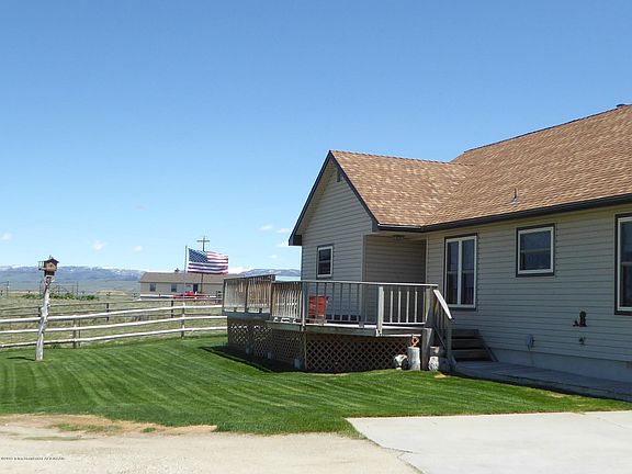 This cozy home has been well taken care of and has had many recent upgrades including all new vinyl siding with upgraded insulation, new roof, new kitchen, new appliances, upgraded wiring, new gas furnace. There are at least 9 garage stalls in 4 different garages. Two attached garages and two detached metal buildings. You'll love the wood clad interior with high ceilings in living area and massive rock fireplace. There is a loft area and two upstairs bedrooms with a shared bath and two downstairs bedrooms with shared bath as well as a 1/2 bath and laundry room. There is more than ample closet and storage space throughout. The home has a lovely landscaped lawn with sprinkler system, concrete aprons and patio and front deck. The views are spectacular of both the Wyoming and Wind Rivers.