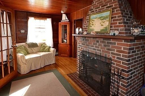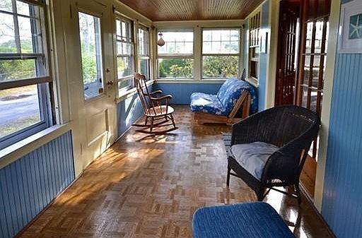 CHARMING COTTAGE that is beautifully maintained with vintage features that is a three minute walk to Association Beach ($35 per year optional dues) on BUTTERMILK BAY. Step into the large ENCLOSED PORCH surrounded with windows that catch the seaside breezes and then through original FRENCH DOORS to the fireplaced Living Room which boasts hardwood floors. Dining Area / Eat-In Kitchen is open to Living Room for inviting get-togethers. Two Bedrooms with hardwood floors and a three quarter bath round out the Cottage. Detached garage for car or storage along with a paved driveway. Extra Lot right next door is included with this sale. This Cottage is in excellent move-in condition. Start your summer vacations in this nice neighborhood and also a very short distance to the Cape Cod Canal. Some furniture to be included with sale.
