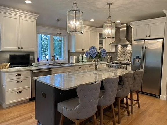 Distinctive Builder's own home that welcomes you with a charming farmers porch as you enter the home you realize that the finish work is impeccable and adds to the beautiful charm of this Craftsman style home. This is the perfect home for entertaining with a gourmet kitchen and a beautiful wet bar that opens to the stunning cathedral ceiling Great Room that has a dramatic floor to ceiling custom fireplace. The generous Master Bedroom boasts a custom walk in closet with built-ins and why go to the spa when you have your own in this Master Bathroom, it has a custom tiled steam shower that has a couch of granite and tile to lounge on while you are taking a steam. That's only the beginning, the downstairs has another fireplaced Family Room with sliders to a patio and the spacious back yard that is hard to find in this town. This house is located on a quiet cul-de-sac across from Killam School and minutes from Rt. 93 and 95. Don't wait to see this one, it won't last.