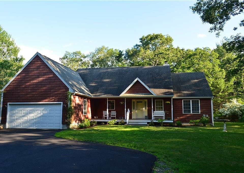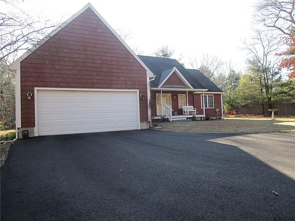 Come view this wonderful sprawling 2001 Ranch home set back on almost 1 acre of land. Located in sought after Castle Ridge on cul de sac. This home is handicapped accessible with wide doors, no thresholds and wide hallways. 3 bedrooms and 2 full baths. Hardwoods throughout. The Master suite is on it's own side of house and has a standalone shower and a jetted tub as well as a walk in closet. The two other bedrooms are located at other end of house with full tile bath. Separate laundry room on first floor. House features large applianced center island kitchen open to the Family room with fireplace and dining area. This space has soaring cathedral wooden ceilings with skylights. Such a comfortable living style. French doors lead to back deck with privacy of woods. There are 3 mini splits to provide air conditioning/heat to supplement oil heat if preferred. The home is wired and ready for a whole house generator. Attached 2 car garage. Full basement plus shed for even more storage. Located close to highway, shopping, schools, commuter bus, railway, URI and RI finest beaches.