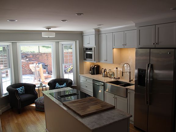 - RoomKitchenFeatures: Kitchen Island, Pantry, Recessed Lighting, Eat-in Kitchen, Bay Window, Floors-Hardwood, Counter Tops - Other, Bar, Backsplash-Tiled, Cabinets-Painted