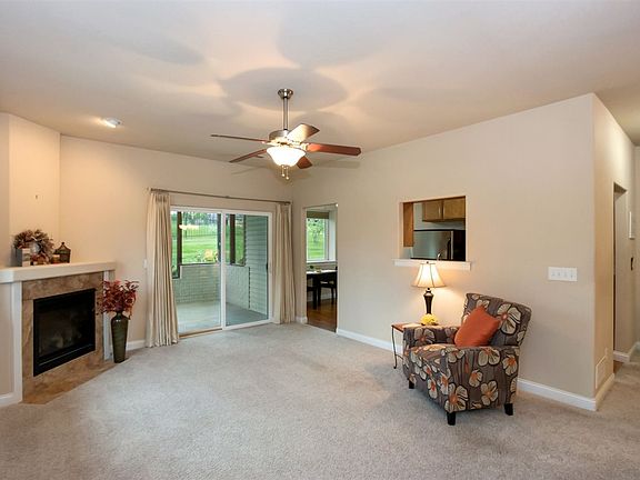 Lovely 2 bedroom, 2 bath corner lot condo in popular Mayfield neighborhood! Bright and open living room with gas fireplace and slider to screen porch. Large dining area off living room and kitchen. Kitchen w/ s/s appliances, granite, and breakfast area with window providing great natural light! Master suite w/ master bath, double vanity, and walk-in closet. Laundry room w/ storage. Zero-entry. 2 car attached garage w/ attic storage above.