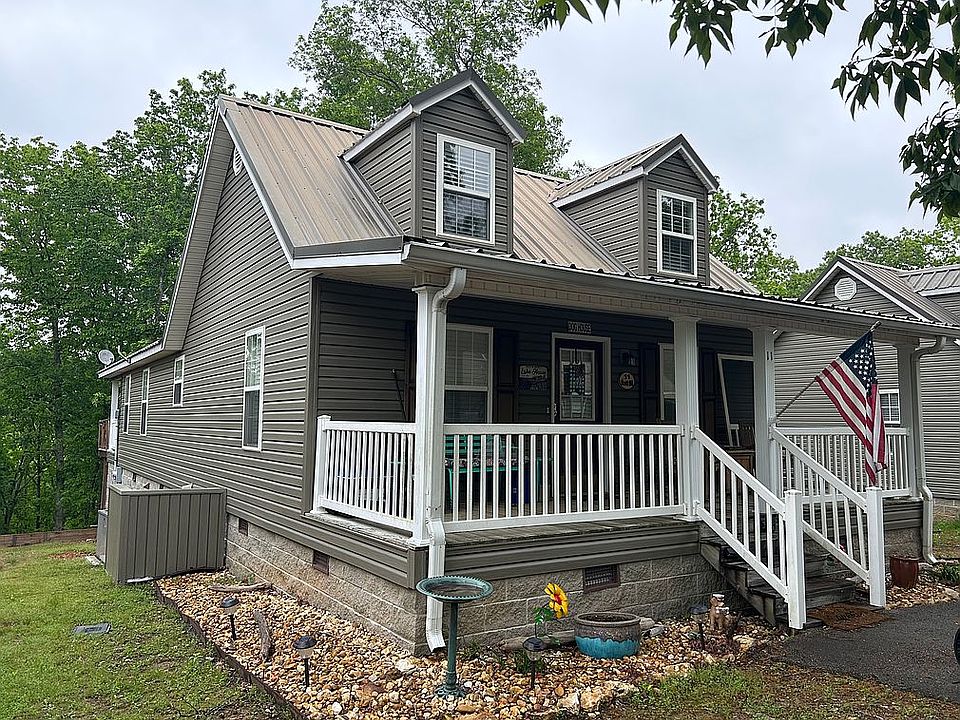 Fully furnished 2 bedroom, 2 bath home. Awesome gated community with pool, tennis, basketball and volleyball court, exercise facility & more. The Waverly floor plan is open and has vaulted ceilings, large great room with corner fireplace and cute bar area. Inviting front porch and deck on back overlooks the bluff with no houses behind! House has had plex added in the plumbing. New paint in the last year. 10x25 deck has been added with a lower 8x10 deck for storage. Perfect family, vacation or rental home. Willing to co-op.