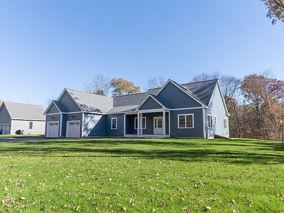 BRAND NEW AND READY FOR OCCUPANCY! This stunning, executive ranch offers 7 rooms, 3 bedrooms, 2 full baths, and a bright home office. Designed with an open floor plan, it features a cabinet-packed chef’s kitchen with granite countertops, a large center island, and flows seamlessly into the expansive living/dining room with vaulted ceilings, recessed lighting, and a cozy gas fireplace. The private primary suite boasts a huge walk-in closet and spa-like bath. Additional highlights include a separate laundry room, mudroom, hardwood floors, central air, propane heat, paved driveway, and an oversized deck perfect for entertaining. Enjoy a welcoming farmer’s porch, paved driveway, and a beautiful backyard with sweeping views. Wonderful commuter location with easy access to the MA Pike, Rts 9, 20 & 84! See the attached 3D Matterport tour for a full experience!