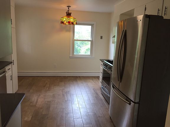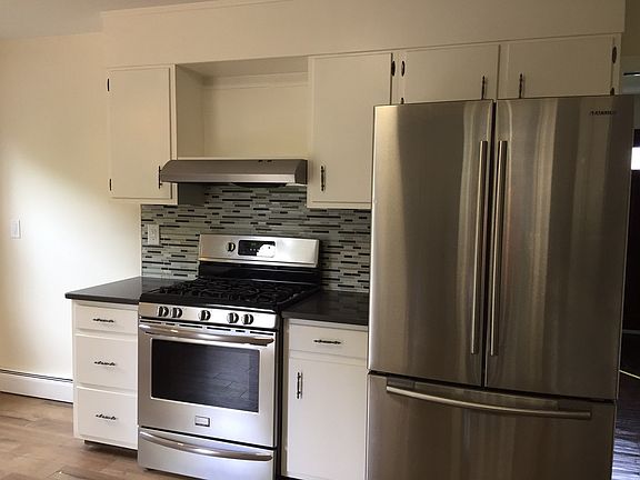 This newly updated 1.000 sq ft duplex home sparkles! Includes 2 large bedrooms, spacious and bright living room, 1 and 1/2 new baths, and eat-in-kitchen includes new stainless steel fridge, dishwasher and gas stove. Newly refinished hardwood floors. Gas heat. Brand new Washer/dryer in full basement. Plenty of closet space. Also has an attic for storage. New covered back porch. Water included in rent. 2 off-street newly paved parking spaces. Walk to train station. Very close to I-95. Owner responsible for snow removal and lawn maintenance. Tenant pays all other utilities.